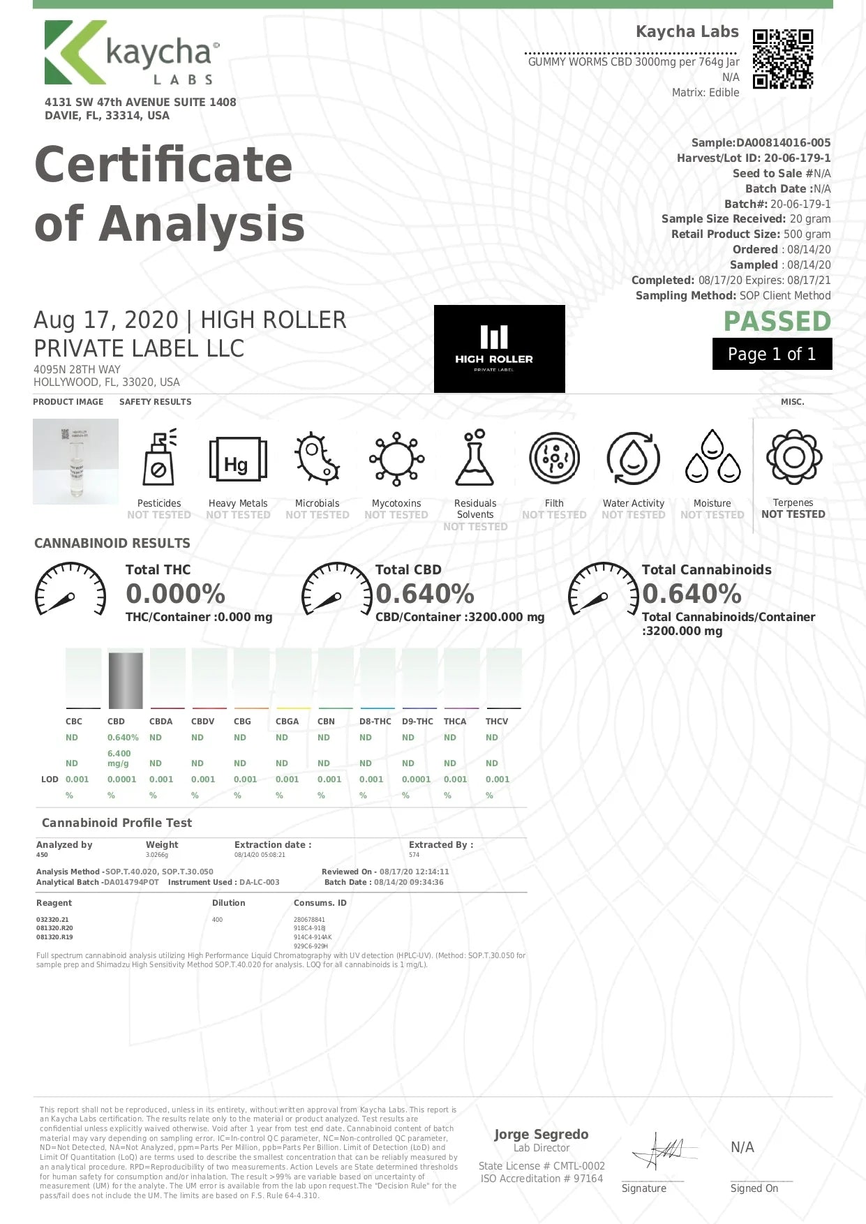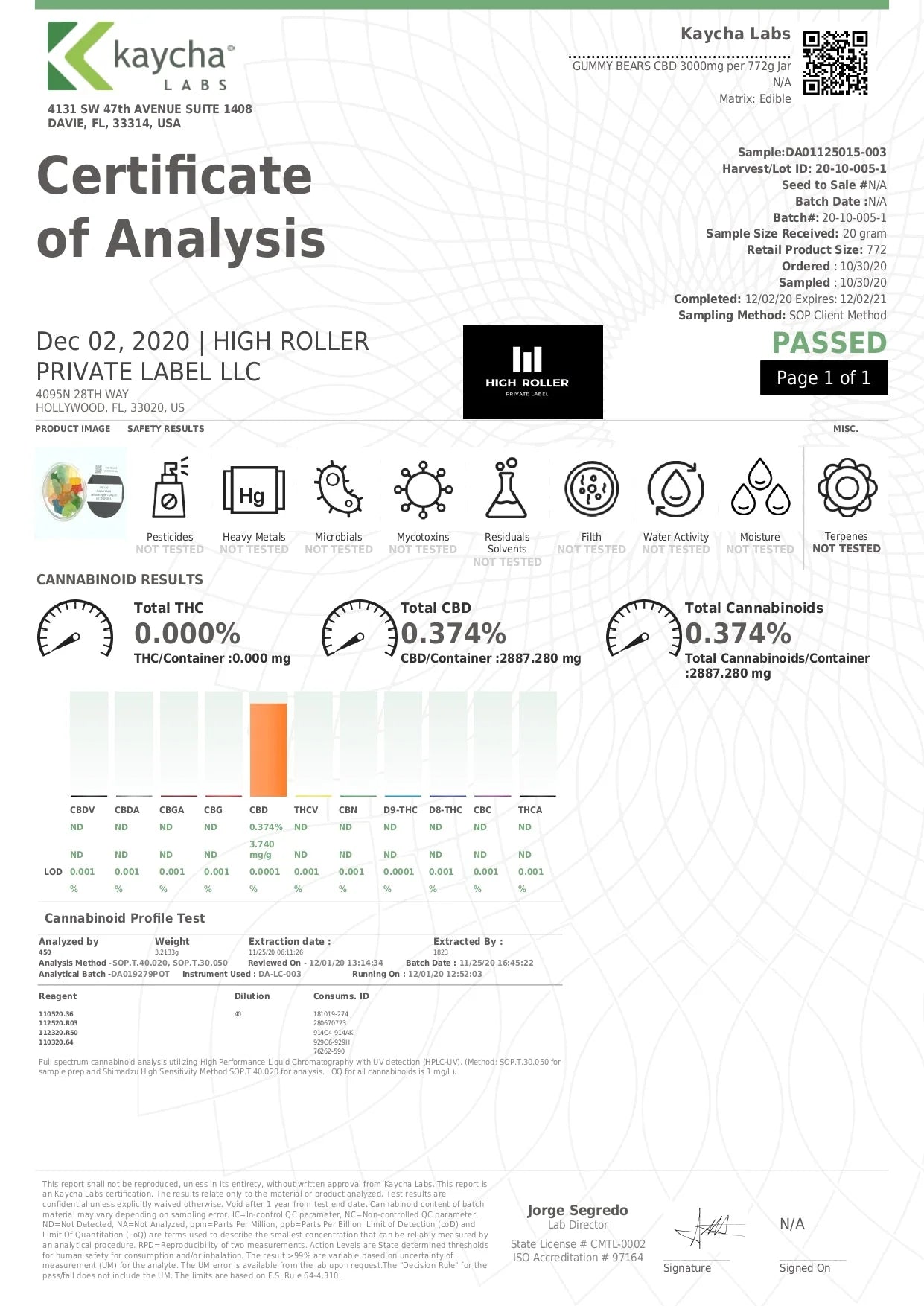 Corn Syrup (From Corn), Sugar (From Beets), Water, Gelatin, Lactic Acid, Citric Acid, Natural and Artificial Flavors, Fumaric Acid, Pectin (Derived From Fruits), Titanium Dioxide (Color), FD&C Yellow #5, FD&C Red #40, FD&C Yellow #6, FD&C Blue #1, HEMP EXTRACT CANNABIDIOL (CBD), COCONUT OIL.