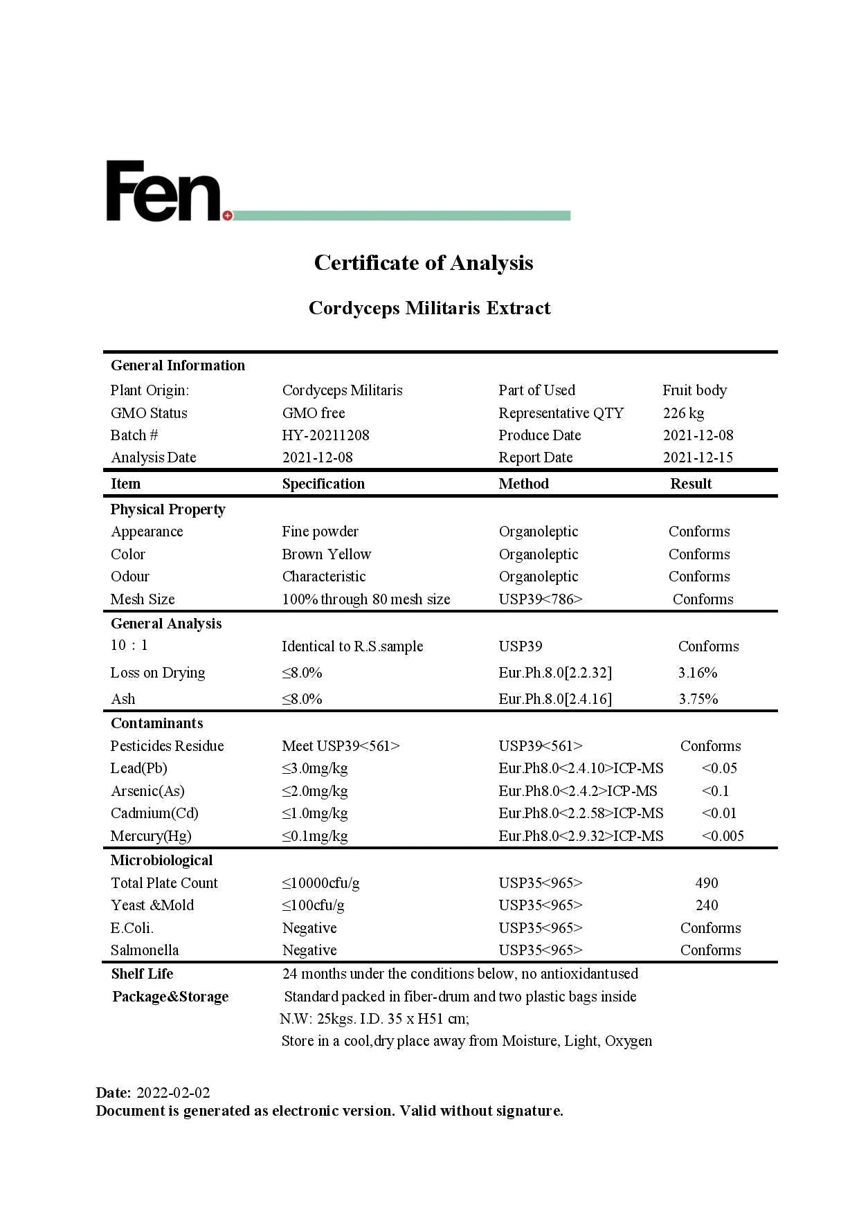 Ingredients: Cordyceps Mushroom Extract, (30% Polysaccharides).