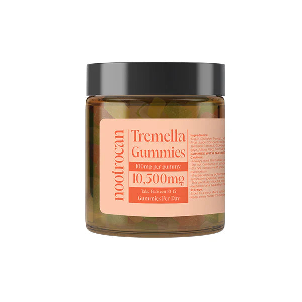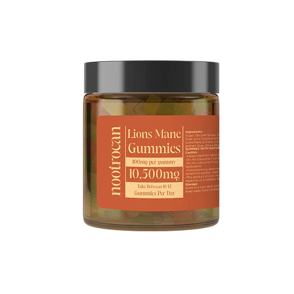 Discover the power of Nootrocan 10500mg Nootropic Mushroom extract gummies, a premium nootropic supplement crafted in the UK. Each 450ml amber glass jar includes a lid and contains 15000mg of full fruiting body, grain-grown mushroom extracts. This one-month stock of gummies features a unique blend of six mushroom extracts, such as Turkey Tail, Cordyceps, Lion's Mane, Reishi Mushrooms, Tremella, and additional Turkey Tail. These vegan, non-GMO, gluten-free, and GMP-compliant gummies are designed to enhance cognitive functionality, memory, focus, mood, gut health, metabolism, and energy. Enjoy the delicious and convenient brain-boosting benefits of Nootrocan 10500mg Nootropic Mushroom extract gummies in your daily routine.