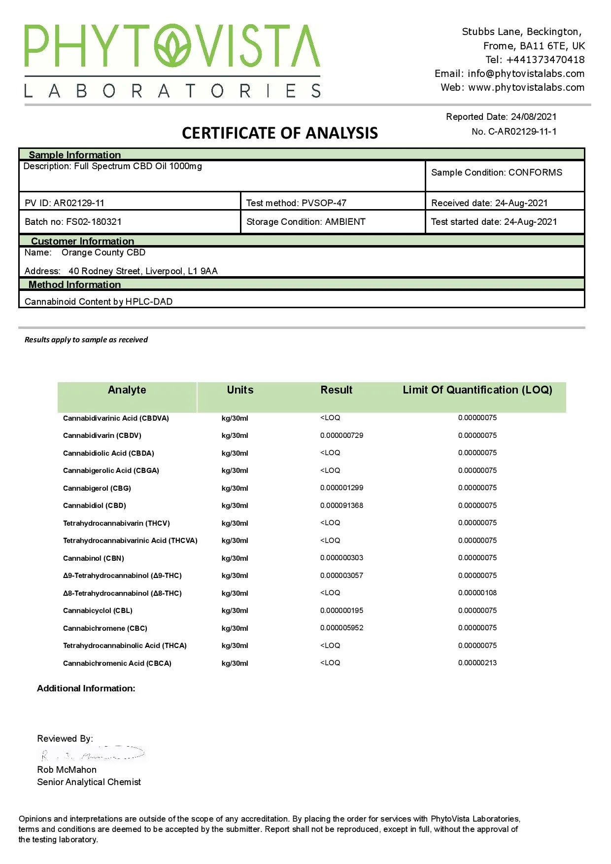 Orange County CBD's 1000mg oil is largely composed of CBD, with a mix of other cannabinoids to make sure that the entourage effect is in full gear. This allow for them to match their own premium standards for what they believe makes the finest CBD. Quality and its full-sized effect of this larger CBD oil is not sacrificed despite it's small size and lower price point.