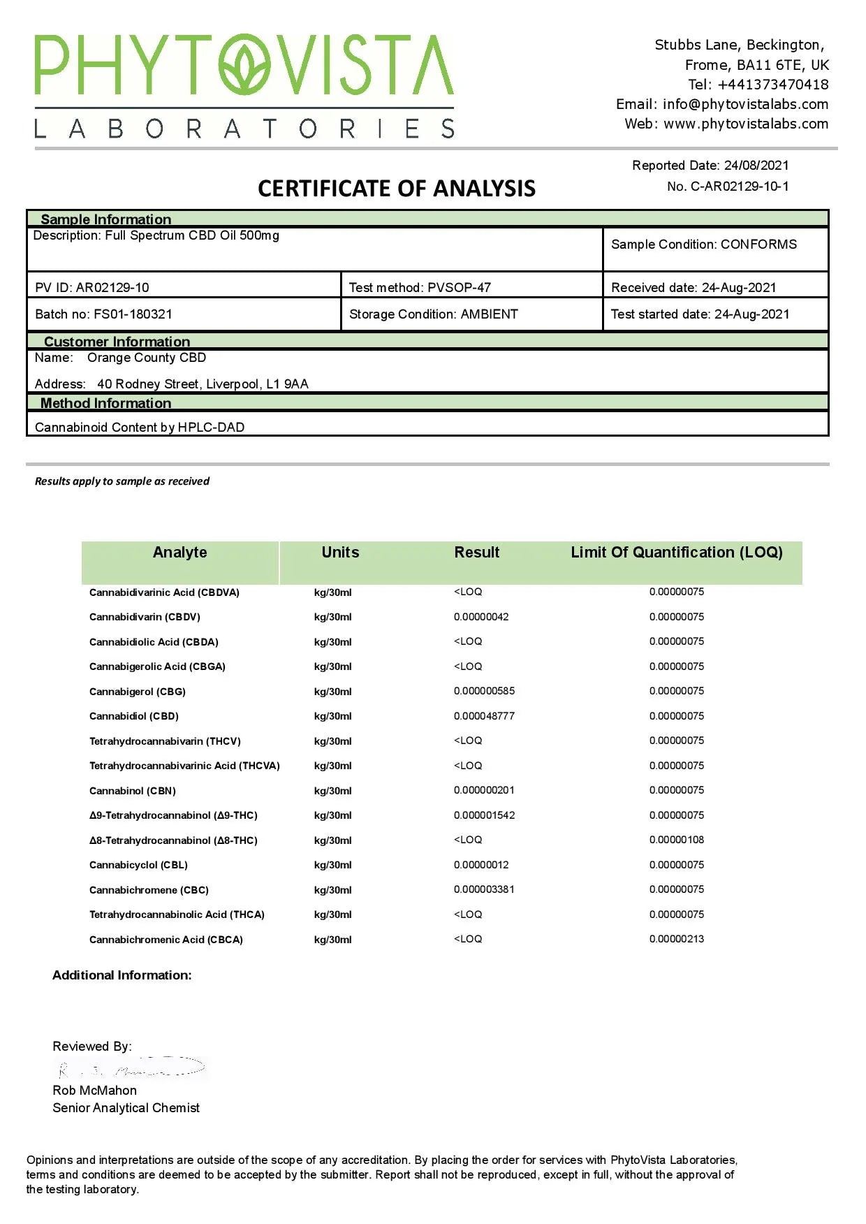 Containing only trace amounts of THC, we’re able to give you that excellent full-spectrum experience whilst maintaining trading compliance and sticking to Orange County CBD's own understanding about what makes CBD truly high-quality. At a relatively strong concentration this bottle is perfect for someone who knows exactly what their ideal dose is. With their naturally occurring terpene extracts, this 500mg Full Spectrum CBD oil has an authentic taste and smell, making it as pleasant to take as it is effective. Quality and its full-sized effect of this large CBD oil is not sacrificed despite it's small size and lower price point.